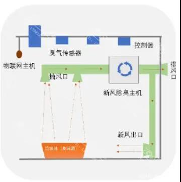 确保垃圾站内空气的流通,保持垃圾站内空气的质量。另外,系统也可以通过平台软件或APP,实现除臭系统的远程控制。