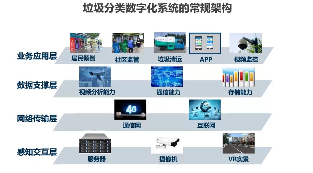 垃圾分类全过程管理平台按照“一网一库四平台”的架构进行建设,包括垃圾分类信息感知网、垃圾分类专题数据库、垃圾分类三级监管平台、垃圾分类社会单位信息服务平台、垃圾分类物联网服务平台和市民服务平台。