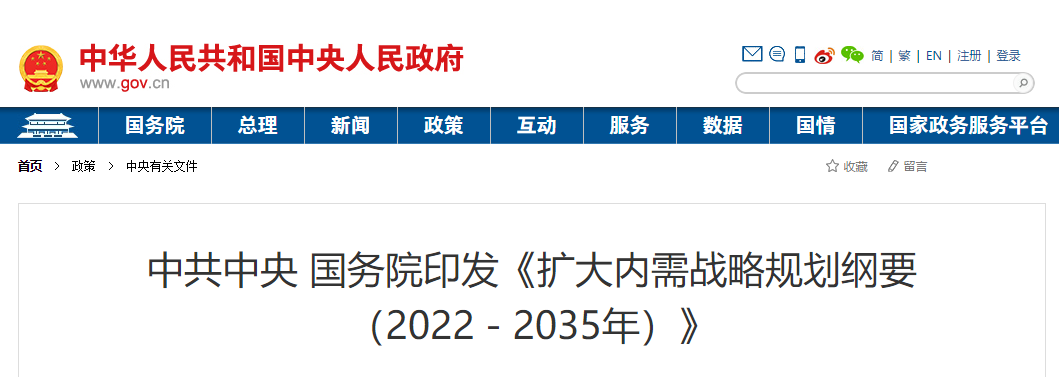 《扩大内需战略规划纲要(2022-2035年)》主要内容如下。