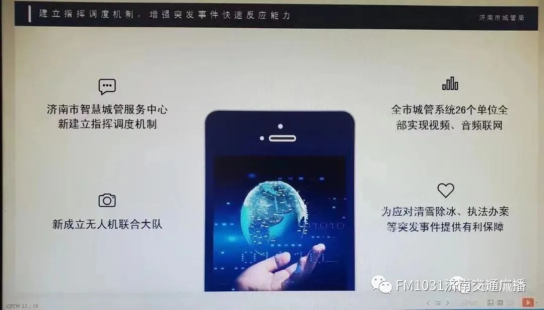 城市因文明而美丽,生活因智慧更美好。济南城管以建设“好用、实用、管用、爱用”的智慧化系统平台为目标,树立智能化管理思维,突出智慧监管,结合专项整治,充分运用智慧监管系统,助推生态文明建设,为全力创建“无废城市”示范区提供坚实的综合执法保障。